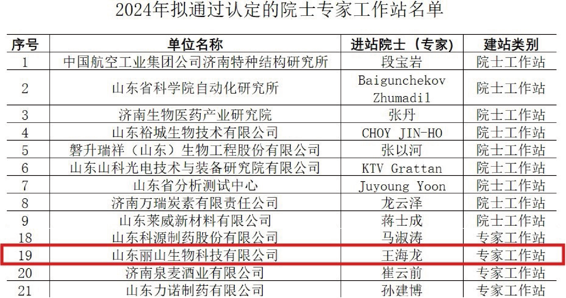 Recently, Jinan Association for Science and Technology published the ‘Publicity on the Proposed List of Jinan Academician/Expert Workstations in 2024’. After being recommended by districts and counties, qualification review, on-the-spot inspection, expert evaluation and other processes, an ‘Expert Workstation’ of Prof. Hailong Wang of the State Key Laboratory of Microbiology Technology of Shandong University and Shandong Lishan Biotechnology Co., Ltd. was on the list.
