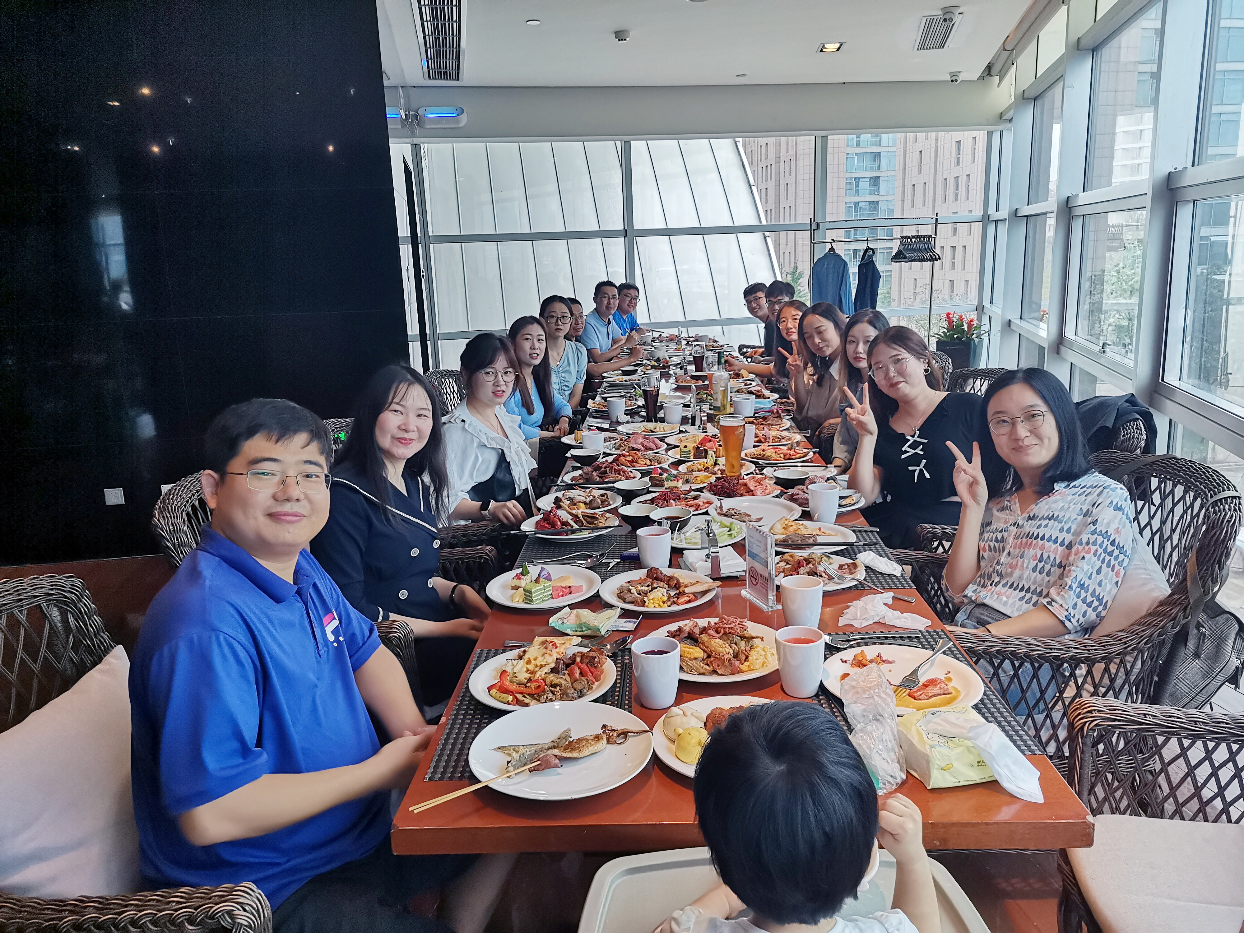 dining together in a restaurant viewing Qingdao Fushan bay, 2021