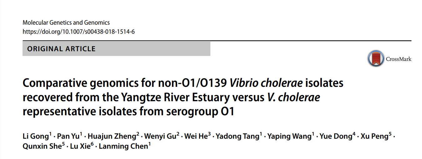 Comparative genomics for non-O1/O139 Vibrio cholerae isolates recovered from the Yangtze River Estuary versus V. cholerae representative isolates from serogroup O1.