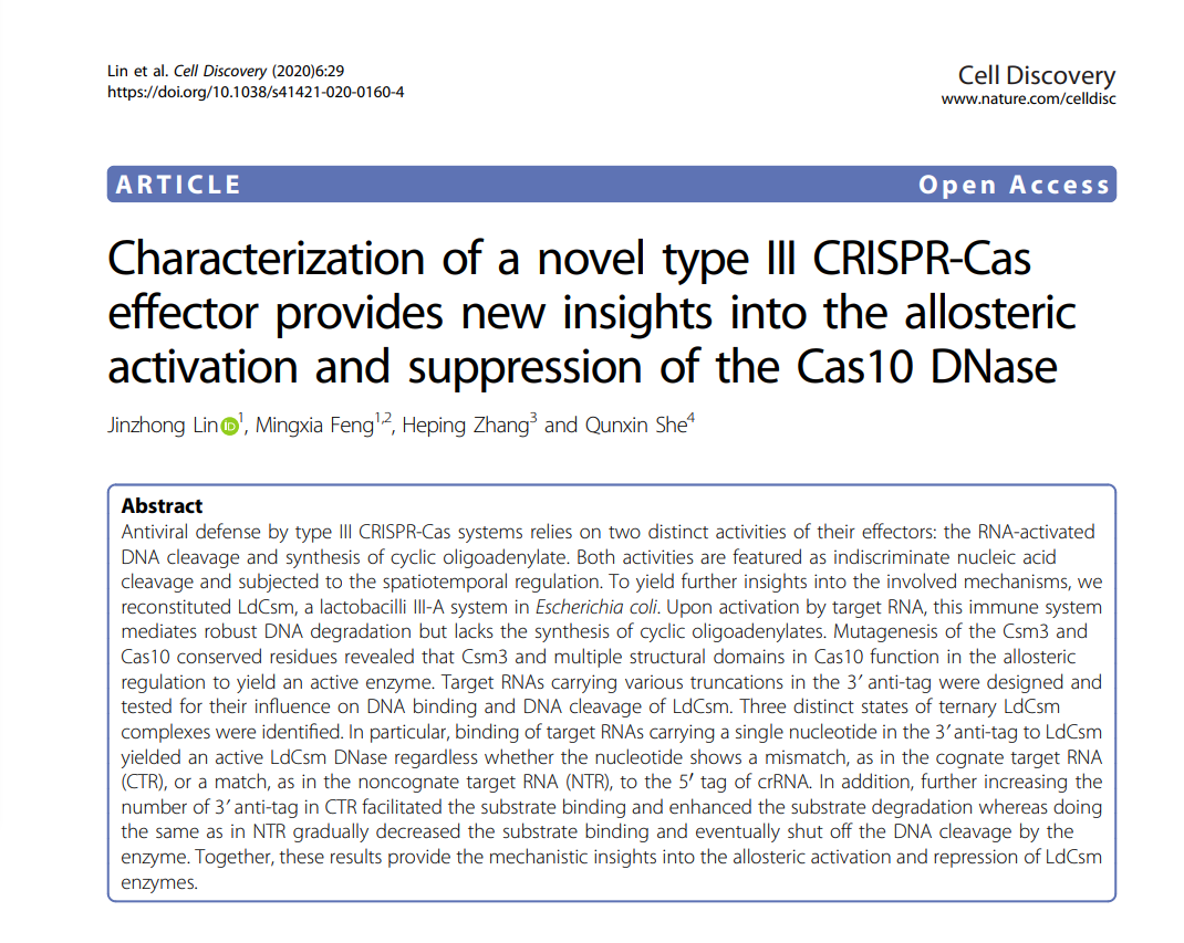 Characterization of a novel type III CRISPR-Cas effector provides new insights into the allosteric activation and suppression of the Cas10 DNase.