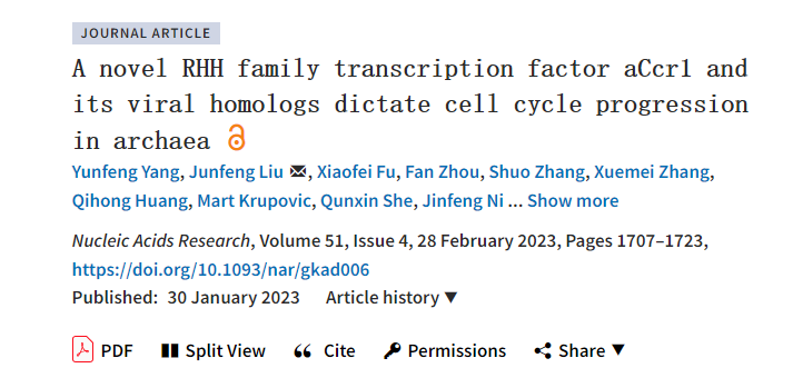 A novel RHH family transcription factor aCcr1 and its viral homologs dictate cell cycle progression in archaea. Nucleic Acids Res.