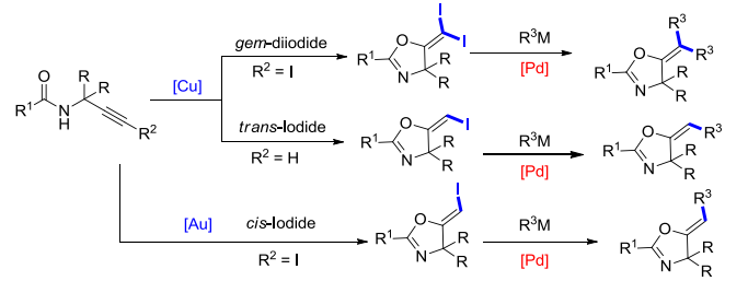 - An Efficient Synthesis of gem-Diiodoolefins (E)-iodoalkenes from Propargylic Amides with Cu(I)/Cu(III) Cycle