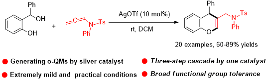 - Synthesis of 4H-chromenes by silver (I)-catalyzed cycloaddition of ortho-quinone methides with N-allenamides