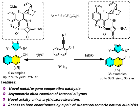 Xue Zhang, Shunian Li, Wenjing Yu, Yufang Xie, Chen-Ho Tung, and Zhenghu Xu*, Asymmetric Azide−Alkyne Cycloaddition with Ir(I)/Squaramide Cooperative Catalysis: Atroposelective Synthesis of Axially Chiral Aryltriazoles,