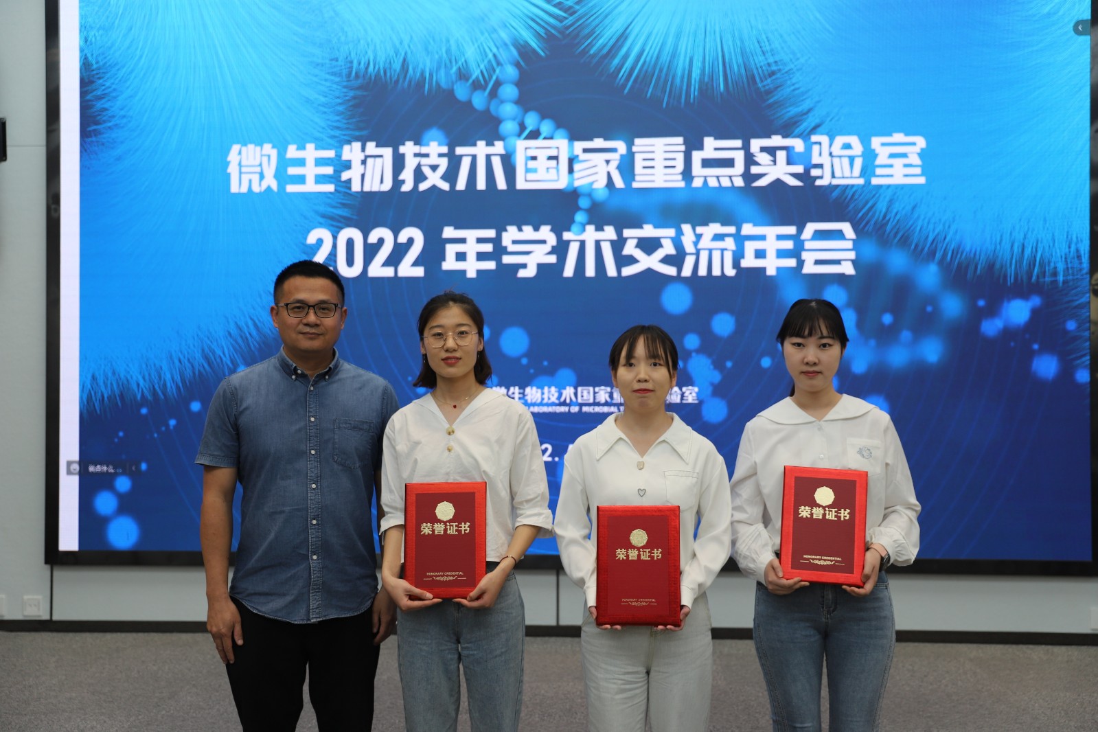 为适应国家重点实验室的发展要求,促进学术交流融合 ,推动科技创新发展,提高人才培养质量,微生物技术国家重点实验室于5月27日-28日举办了2022年度学术交流年会,其中28日下午为研究生学术论坛环节。在摘要评审中脱颖而出的16名博硕研究生依次作学习研究进展报告,最终评选出一等奖1名,二等奖2名,三等奖3名及若干优秀研究生报告。本课题组2021级博士研究生隋新悦汇报了其在大肠杆菌酚类化合物耐受性机制方面的研究进展,并获得三等奖。