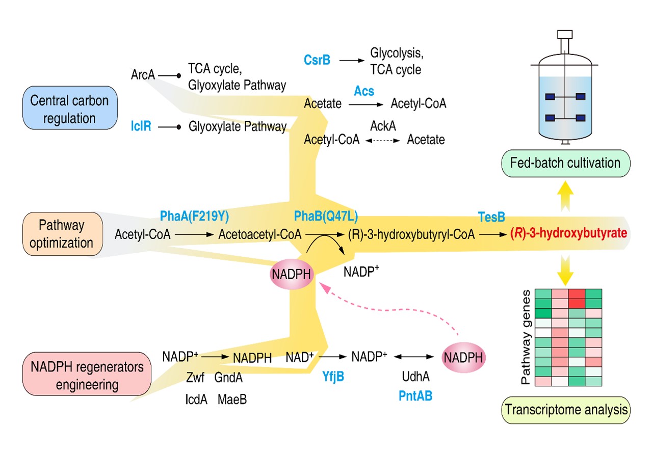 图 三管齐下的系统代谢工程策略提高R-3-羟基丁酸的生物合成