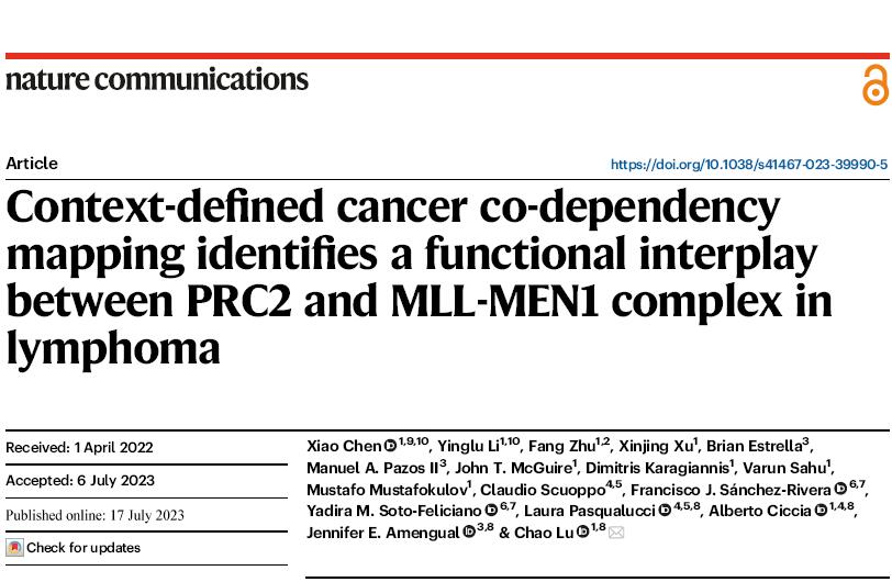 Xiao Chen, Yinglu Li, Fang Zhu, Xinjing Xu, Brian Estrella, Manuel A. Pazos II, John T. McGuire, Dimitris Karagiannis, Varun Sahu, Mustafo Mustafokulov, Claudio Scuoppo, Francisco J. Sánchez-Rivera, Yadira M. Soto-Feliciano, Laura Pasqualucci, Alberto Ciccia, Jennifer E. Amengual & Chao Lu (2023).