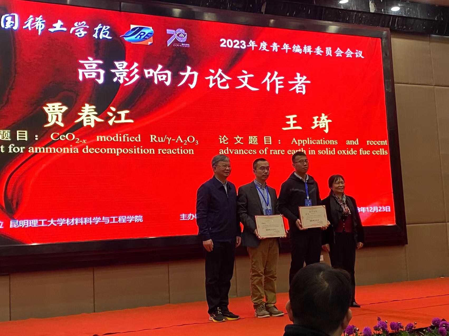 祝贺贾春江教授获得《中国稀土学报》高影响力论文作者,论文题目为:CeO2‒x modified Ru/γ-Al2O3 catalysts for ammonia decomposition reaction。