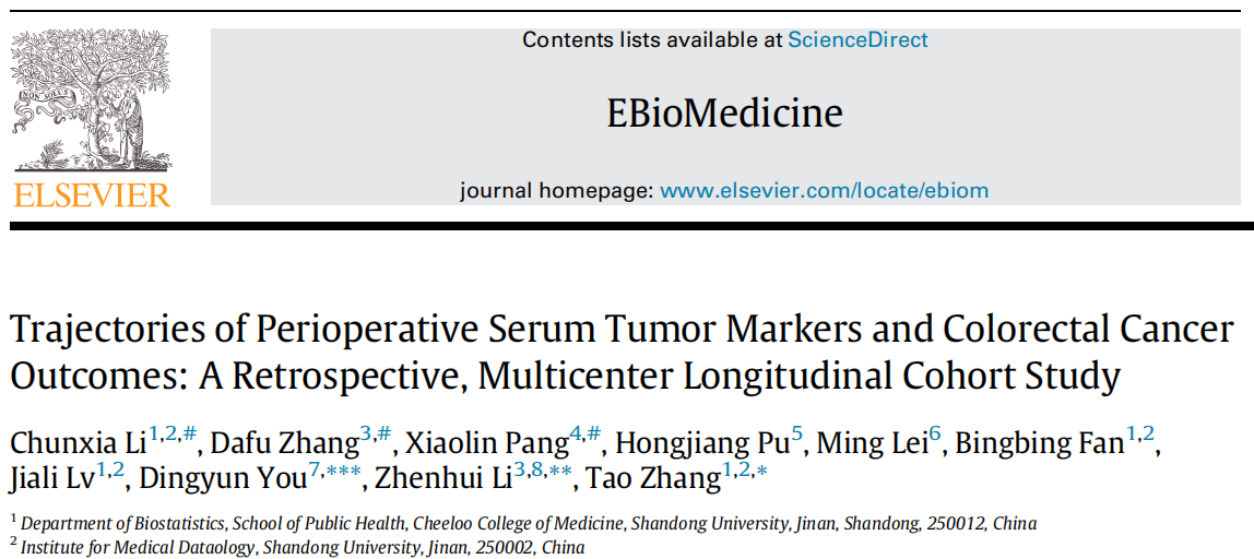 课题组在EBioMedicine发表结直肠癌肿瘤标志物轨迹研究成果
