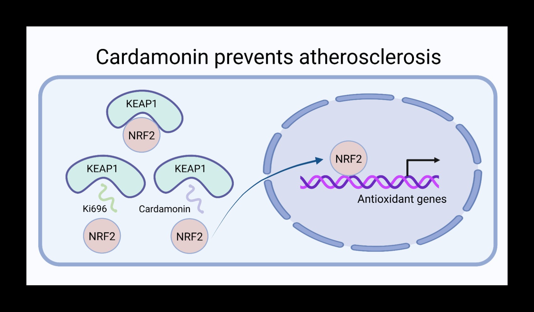 近日,吴昊空间营养研究团队在国际期刊Food & Function (中科院1区,TOP期刊,5年影响因子6.317)发表题为“Cardamonin targets KEAP1/NRF2 signaling in protection against atherosclerosis”的研究论文。山东大学公共卫生学院营养与食品卫生学专业硕士生范鹏飞、博士生孟华丽为共同第一作者,公共卫生学院吴昊教授、齐鲁医院王云彦教授为共同通讯作者,山东大学为第一完成单位和通讯单位。药学院李慧老师、张志岳教授,公共卫生学院杜磊副教授、郭欣副教授,中山大学公共卫生学院王冬亮教授参与了本工作。
