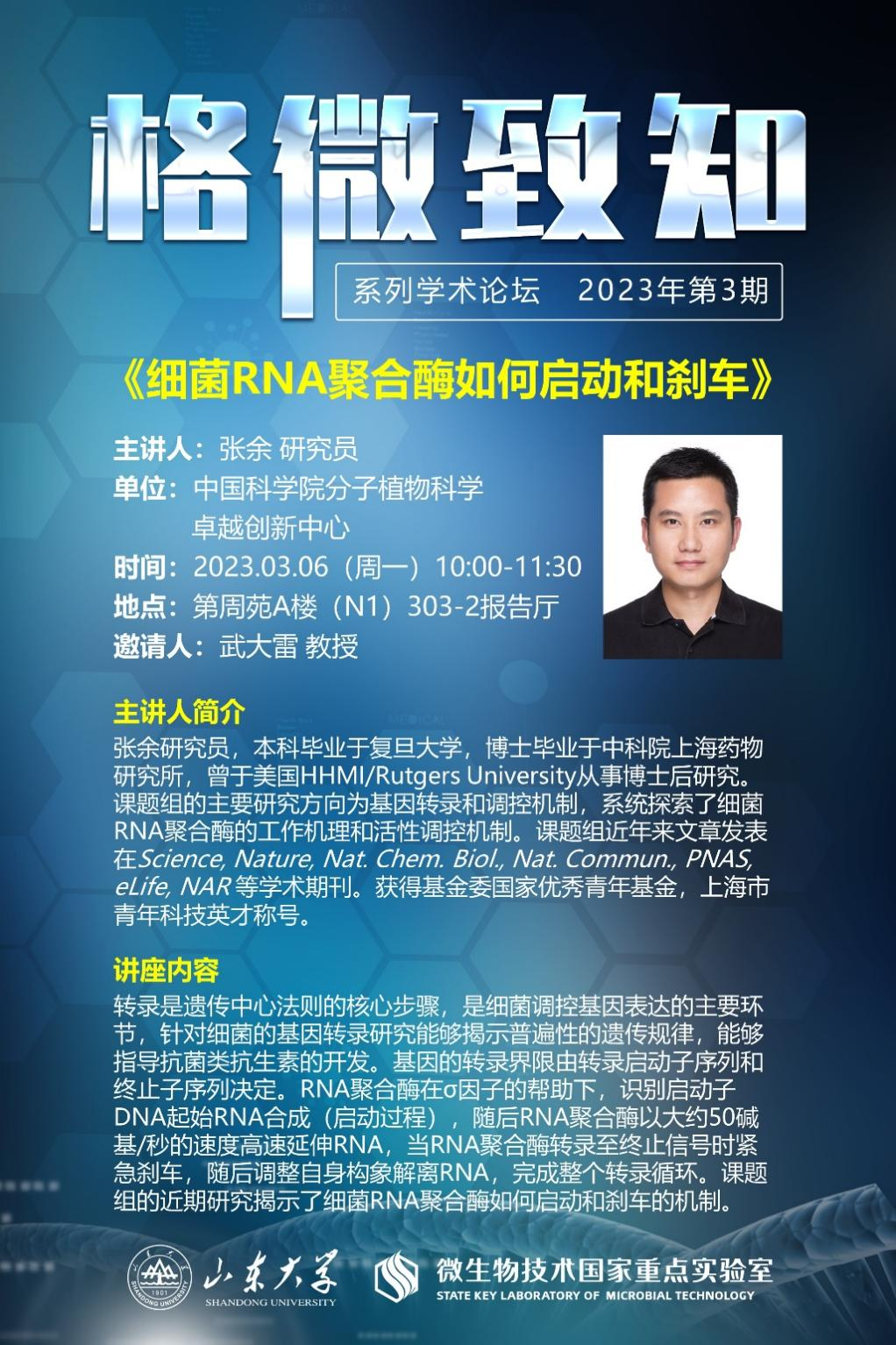 Yu Zhang, a researcher from the Center for Excellence in Molecular Plant Science, Chinese Academy of Sciences, was invited to participate in the series of academic forums of “Microcosmic Exploration for Scientific Insight—Graduate Student Specialized Course”.