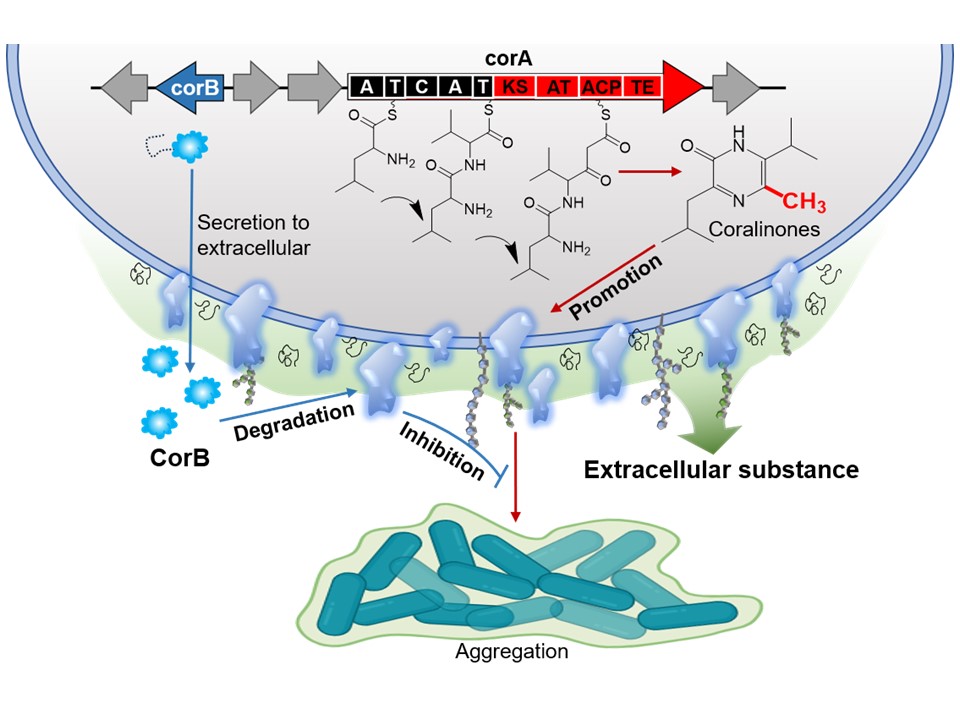 基于基因敲除、异源表达及体外酶反应等手段,解析新颖天然产物的生源途径及催化机制独特的新酶学,指导定向改造和开发具有高催化性能的工具酶,助力酶化学法高效合成结构复杂的天然产物。