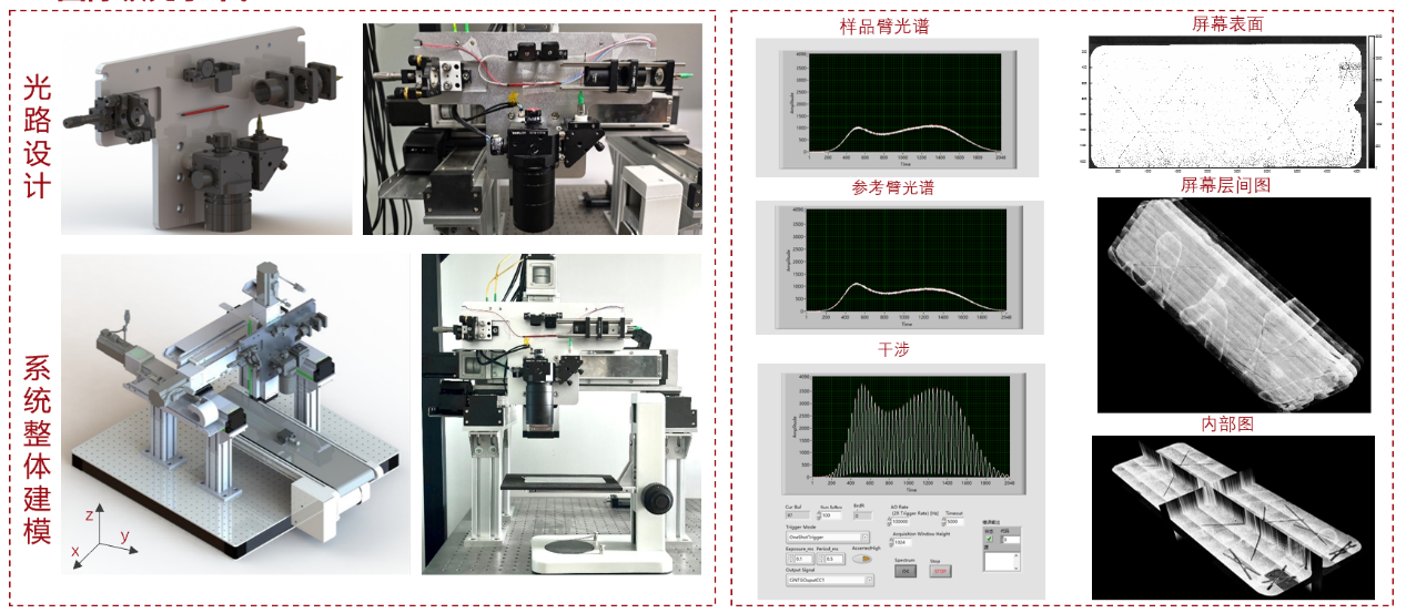 特点:针对当前工业检测中视场小、分辨率低等问题,采用OCT视场拼接和运动自适应控制等技术,研发了工业OCT检测系统,实现了大视场、全自动、高速高分辨率工业流水线检测的效果,达到了国际领先水平。