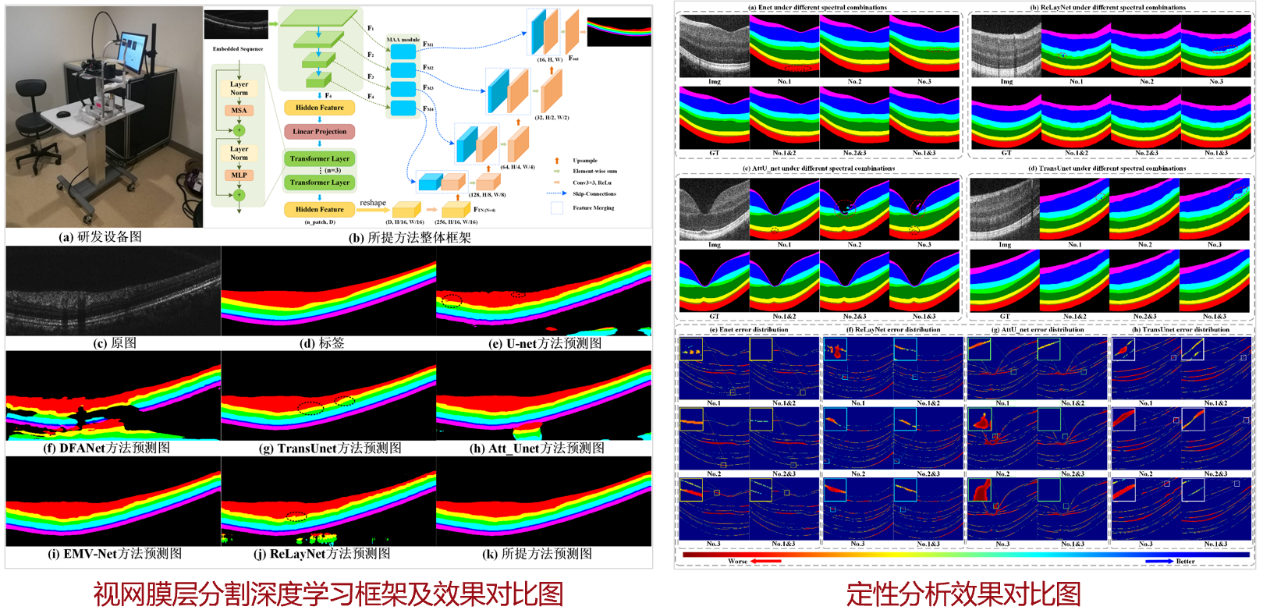 DL的视网膜层分割方法精度提升困难且优化思路单一的问题,首次探索并利用了多光谱信息等技术,研发了通用型视网膜层分割精度提升方法,为该领域开辟了新思路。