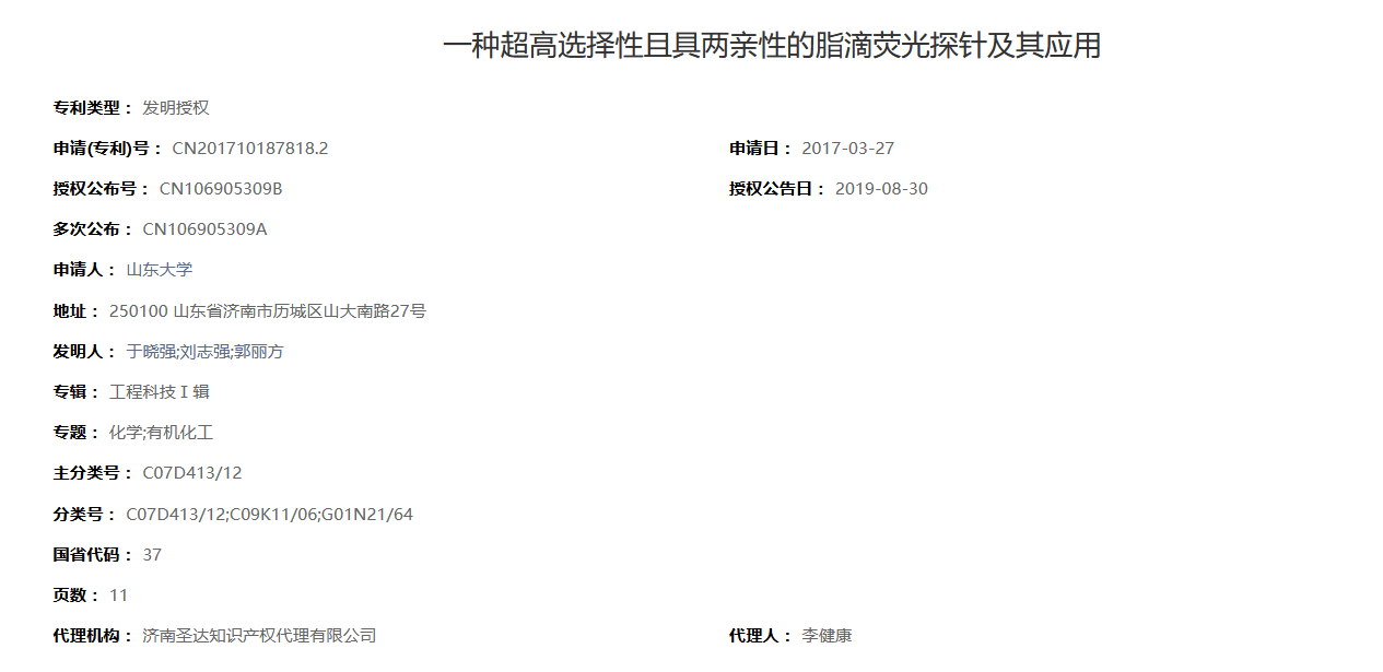 一种超高选择性且具两亲性的脂滴荧光探针及其应用